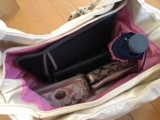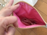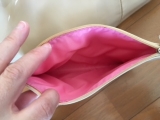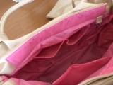 バッグの内側も春らしいピンクのナイロンを使用しているので、汚れも目立ちにくい。