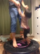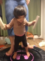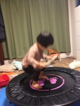 買っちゃいました(^_^;)ミニトランポリン!ダイエット用らしく5分でら1kg走行位のカロリー消費との事本当??!早速乗ってみたけど大人用でバネが強すぎ(´Д` )全然揺れないのなのでお父さんと一緒になんだか楽しそう(^^)お父さんお疲れでリタイアの後も頑張っておりましたがね(^_^;)なんだ… 2012/09/25