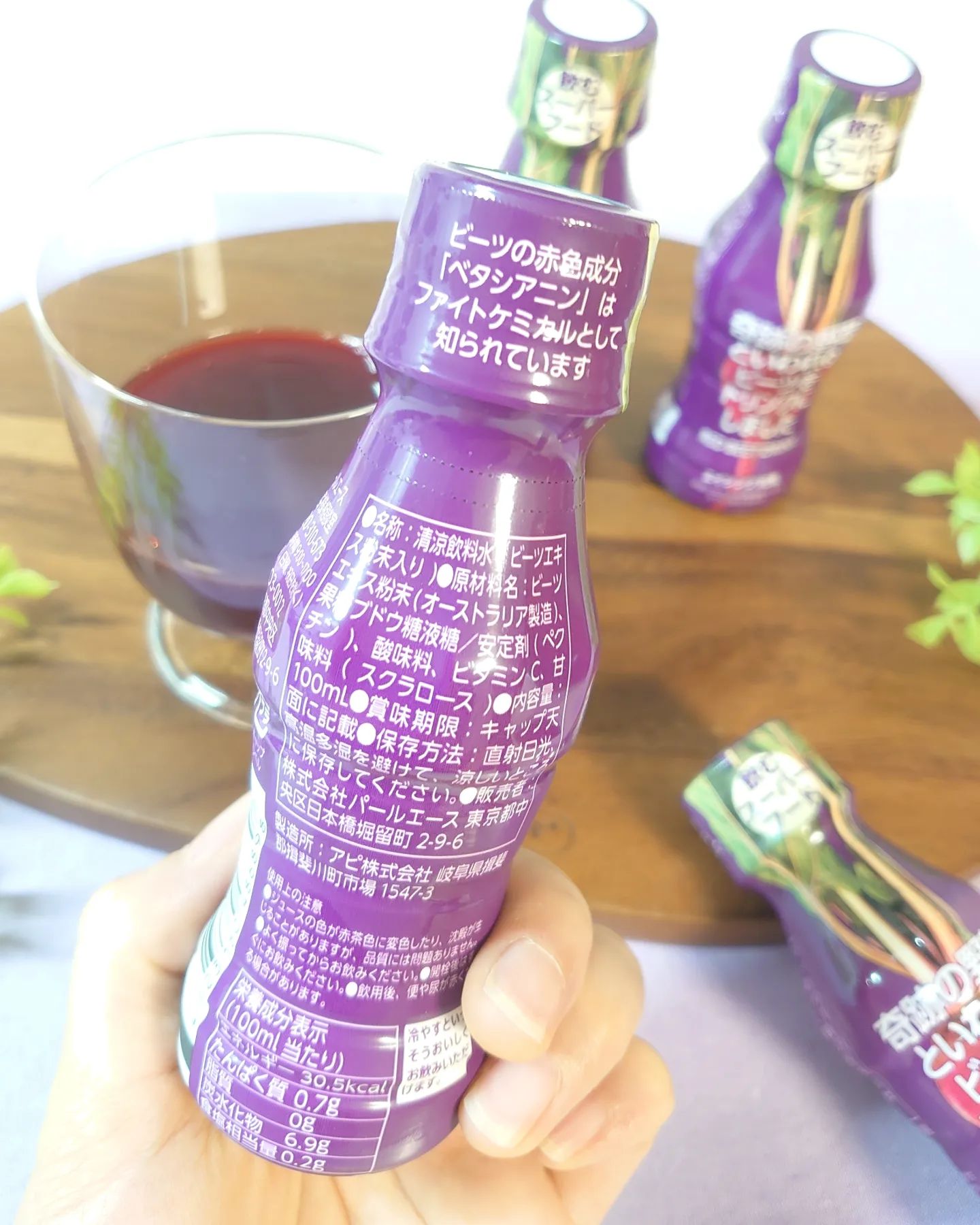 スーパーフードとして注目されている野菜「ビーツ」の栄養を手軽にとれるドリンクです。 「ビーツ」はヨーロッパやアメリカなど世界各国で日常的に食べられ、ポリフェノールの一種であるベタシアニンや硝酸イオン、カリウム、鉄、葉酸など豊富な栄養素が含まれています。 世界中で親しまれ、美容やエイジング対策、そしてスポーツ界でも注目されるスーパーフード「ビーツ」に、ビタミンCを加え飲みやすいドリンクにしました。奇跡の野菜といわれる「ビーツ」の効果をぜひ実感してください! 【商品の特徴】 ・豊富な栄養素が詰まった野菜「ビーツ」を飲みやすいドリンクにしました。 ・100㎖の飲みきりサイズで、毎日手軽に飲んでいただけます。 ・栄養補給に1日1本を目安にお飲みください。
