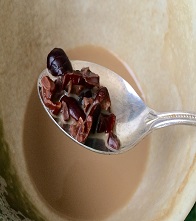 中を開けてみるとレーズンのような香りがします 実際に食べてみると苦みが強いアーモンドという感じですねそのままでは美味しいという感じではないです…今回はカカオニブを使ったマカロンとマカロンクッキーを作ってみましたがスイーツに加えてみると苦さが抑えられ多少苦みが残るけれどもアクセントとなっている… 2017/03/09