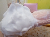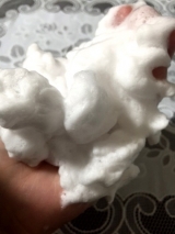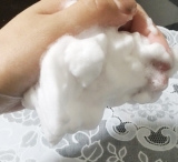 カリ含有石ケン素地、グリセリン、水、ソルビトール、エタノール、タルク、トリ(カプリル/カプリン酸)グリセリル、塩化Na、サクラ葉エキス、アーチチョーク葉エキス、(アスコルビル/トコフェリル)リン酸K、卵殻膜、加水分解シルク、ヘマトコッカスプルビアリス油、シアノコバラミン、コメ胚芽油、トコフェロール、香料、クエン酸Na、乳酸Na、BG
