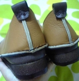 国産人工皮革を使用しとってもやわらか。オリジナル高反発ウレタンインソール入りなので長時間履いても楽チン。製法は袋縫い方式なので足をやさしく包んでくれるような履き心地。