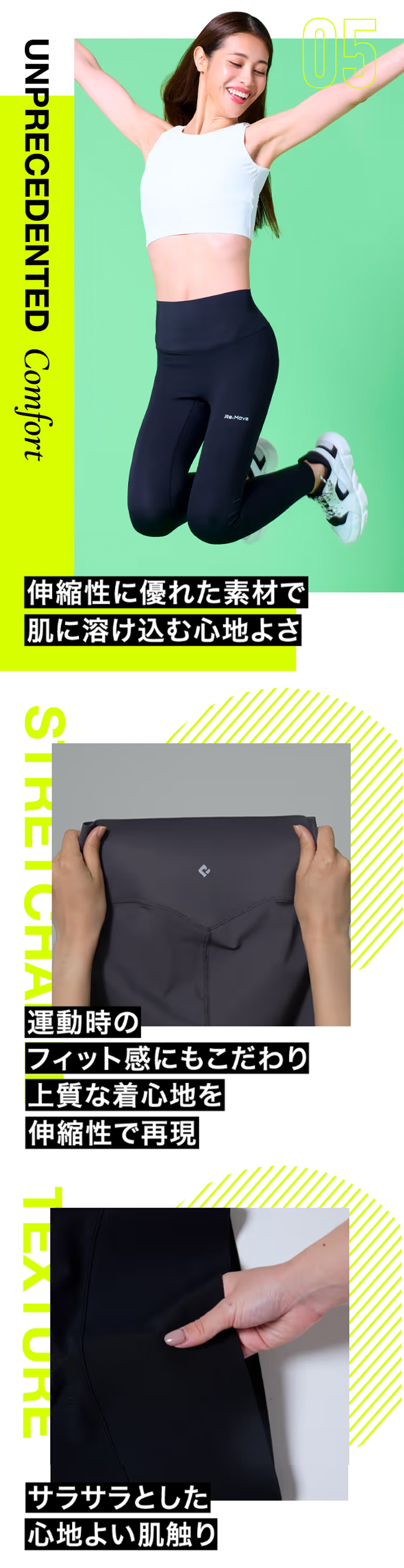 運動時特有の利用シーンで「リムーブレギンス」を使い