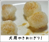 ホットプレートで、焼きおにぎり^m^ピンボケですが小さなおにぎりはシュナチーム用犬用のお醤油を使って無塩なので味はないのですが香りは焼きおにぎりの良いにおいでみん 2013/04/02