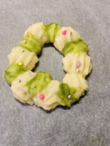 ちょっとお久しぶりですかね(゚o゚;;クリスマスの写真多すぎて一気にアップ出来なかったので今日新たにアップします^ ^お野菜パウダーでリースクッキーと二種絞り出しローズクッキーに挑戦しました!リースクッキー 2014/01/14