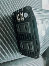 • 本体はアルミ製なので頑丈で見た目も良いです。 内蔵ヒューズがあり、冷却ファンと使用状況を示すLEDライトも付いていますので安心してご使用いただけます。