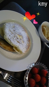 一晩寝かせておいたパンケーキの生地 実は、これ、ヨーグルトを混ぜて、作ったものなんです ふわふわになって、美味しかったです 写真は、失敗作で、本当は、もっとふわふわになります 大好きなトマトと最近ハマっている塩キャベツのスープを添えて 2012/08/21