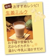 しょうがミルクって、正直作った事がありません(^^;生姜の砂糖漬けや、生姜湯(自分で作ったり100均)を呑んだり蜂蜜の生姜入りを呑んだりとかはしているのですが...ちょっと怖いけれども、生姜専門店の方が勧める飲み方なので当たるのが今から楽しみです!!通販のベータ食品がお届けする「国産しょうが湯 本格… 2012/09/23
