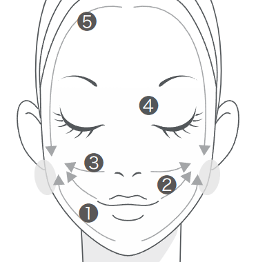 下記の①~⑥の工程順にマスクをのばすことをおすすめします。