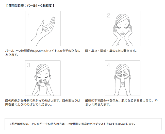 ホワイトケア※2効果を誇るハイドロキノンを増量し、角層深部から湧き上がるような輝きを放ちます。さらに浸透テクノロジーQuSome(R)により、肌をやさしく包む処方が実現しました。速攻型ハイドロキノン※3で、澄み切った肌印象へ導きます。