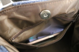 約308グラムで軽量です! 350mlのペットボトル、横幅が20cmまでの長財布が入ります。ています。