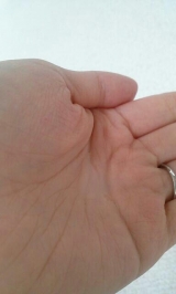 朝晩、500円玉程度を手に取り、手のひらで優しく包み込んで