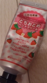 最近の大のお気に入りハンドクリーム ご当地果実 とちおとめ!!! なんだか懐かしい、お菓子のような イチゴの香りです!! いちごミルクのような 甘々なのを想像してましたが さっぱりした香りです 意外と男性ウケが良い気がします さっぱりしているので 何度も塗りなおりが必要ですが すぐにスマホ… 2013/01/25