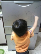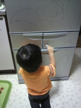 最近めっきり秋っぽくなってきましたね秋の野菜や果物がスーパーに並んでるとテンション上がります そんな中、画伯も芸術の秋に目覚めたようです 冷蔵庫と言う大きなキャンバスに爆発した白ひげ画伯の芸術(。) もう誰にも止められません!!(;´Д`)ノ これは去年の白ひげ… 2011/09/14