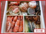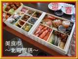 ズワイガニ、タラバガニ、そして美食市ではおなじみの毛ガニ。 この三大ガニが勢ぞろい。 カニ好きにはたまらない贅沢なカニ尽くしのおせちです。