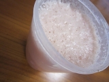 ■原材料名:粉末状大豆タンパク質、ストロベリー果汁パウダー(砂糖、いちご濃縮果汁、デキストリン)、プラン タゴ・オバタ末、デキストリン、フィッシュコラーゲン、乳糖、脱脂粉乳、クレアチンモノハイドレート、L-カルニチンL- 酒石酸塩、共益リノール酸含有油脂粉末、植物性ナノ型乳酸菌粉末、植物ミネラル、発酵乳粉末、砂糖、米胚芽抽出物、酸 味料、着色料(紅麹)、甘味料(アステルパーム・Lフェニルアラニン化合物)、増粘剤(キサンタンガム)、香料、V.C、 ソルビトール、V.E、シクロデキストリン、ナイアシン、パントテン酸Ca、V.B1、V.B2、V.B6、V.A、葉酸、V.D、V.B12、( 原材料の一部にゼラチンを含む)