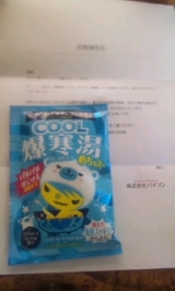 株式会社バイソンのファンサイトファンサイト応援中 モニプラさん×株式会社バイソンさんより 「爆寒湯COOL めちゃスー」が届きました 楽しみに、早速入ってみました 入浴剤を入れて おーー、ぱちぱち!! パチパチパチ いい音 画像はちょっと… 2011/08/06
