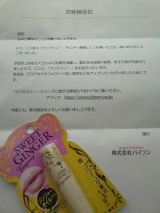 ずいぶん前になりますが、モニプラさんよりリップが当たりました (株)バイソンの発売する「ジンジャニー」のリップスティック こちらジンジャーオイルとハチミツ成分配合のリップで、 とっても香りがいいんです! もちろん配合成分もよくて、塗った瞬間から唇がうるうる ジンジャー風味が… 2012/05/16