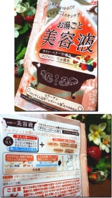 ステキな入浴剤が届きましたその名も「お湯ごと美容液」コラーゲンを中心に、女子力UPな保湿成分を厳選して配合可愛らしい乳白ピンクのお湯色です香りもこだわっていて、ジャスミン、ミュゲなどを組み合わせたフローラルブーケの香りにピンクローズやピーチをプラスした、スウィートな香りです本当に癒されました… 2012/02/22