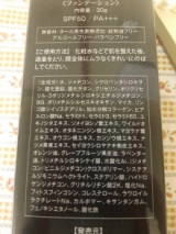 〈全成分〉水、ジメチコン、シクロペンタシロキサン、酸化亜鉛、酸化チタン、グリセリン、ポリグリセリル-3ポリジメチルシロキシエチルジメチコン、BG、ポリメチルシルセスキオキサン、マイカ、リンゴ酸ジイソステアリル、加水分解コラーゲン、ヒアルロン酸Na、セラミド1、セラミド3、セラミド6Ⅱ、ユキノシタエキス、ソメイヨシノ葉エキス、ワイルドタイムエキス、オタネニンジン根エキス、マヨラナ葉エキス、オウゴン根エキス、カンゾウ根エキス、ナツメ果実エキス、セイヨウシロヤナギ樹皮エキス、オレンジ油、グレープフルーツ果皮油、ラベンダー油、トリメチルシロキシケイ酸、水酸化Al、(ジメチコン/ビニルジメチコン)クロスポリマー、ジステアルジモニウムヘクトライト、ステアリン酸、ハイドロゲンジメチコン、グリチルリチン酸2K、塩化Na、フィトスフィンゴシン、コレステロール、ラウロイルラクチレートNa、カルボマー、キサンタンガム、フェノキシエタノール、酸化鉄