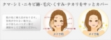 〈全成分〉水、ジメチコン、シクロペンタシロキサン、酸化亜鉛、酸化チタン、グリセリン、ポリグリセリル-3ポリジメチルシロキシエチルジメチコン、BG、ポリメチルシルセスキオキサン、マイカ、リンゴ酸ジイソステアリル、加水分解コラーゲン、ヒアルロン酸Na、セラミド1、セラミド3、セラミド6Ⅱ、ユキノシタエキス、ソメイヨシノ葉エキス、ワイルドタイムエキス、オタネニンジン根エキス、マヨラナ葉エキス、オウゴン根エキス、カンゾウ根エキス、ナツメ果実エキス、セイヨウシロヤナギ樹皮エキス、オレンジ油、グレープフルーツ果皮油、ラベンダー油、トリメチルシロキシケイ酸、水酸化Al、(ジメチコン/ビニルジメチコン)クロスポリマー、ジステアルジモニウムヘクトライト、ステアリン酸、ハイドロゲンジメチコン、グリチルリチン酸2K、塩化Na、フィトスフィンゴシン、コレステロール、ラウロイルラクチレートNa、カルボマー、キサンタンガム、フェノキシエタノール、酸化鉄