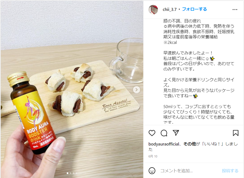 「早速飲んでみましたよー!私は朝ごはんと一緒に☺️✨