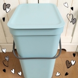 ブラバンシアのプラスチック製万能収納ボックスです。もちろんゴミ箱として使用できます。フタや取ってがついていてにおいも漏れにくく、持ち運びも簡単。壁付けもできます。色も4色カラフルです。