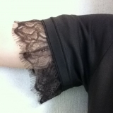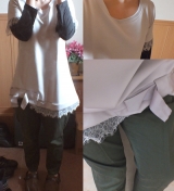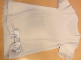 裾部分はアシンメトリーにし、大きなグログランテープのリボンが目を惹くラブリーなチュニックです。