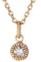 変わらぬ人気を誇るピンクゴールドと約2.5ミリのダイヤモンドのリッチな組み合わせ。石枠の周囲に細かな刻みを入れることでクラシカルな雰囲気を演出。細部にまで凝った細工でワンランク上のきらめきが大人の女性にぴったり。単品でも幅広く重宝する愛されプチダイヤモンドネックレス。
