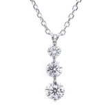 憧れのダイヤモンドを3石セットした、人気のトリロジーネックレス。3石のダイヤモンドは、輝く女性の「過去・現在・未来」を象徴しており、女性の内面の美しい輝きを映し出しています。大中小の異なる大きさを使用した3石のダイヤモンドはそれぞれ上下2本の爪でセットされている為左右から光を取り込みより輝きを引き立てています。光をあびる度にきらきらと光るダイヤモンドは胸元を華やかに演出。上質なプラチナの輝きはどんなシーンにも合わせやすいネックレス。ダイヤモンドのひと粒一粒に意味が込められているのでプレゼントにもお勧めです。