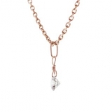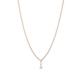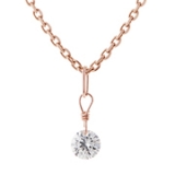台座をいっさい使わずに、ダイヤモンドにレーザーで小さな穴をあけてゴールド線をひとつひとつ手巻きで留めた上品でエレガントなダイヤモンドネックレス。シーンを選ばない究極にシンプルなデザインは重ね付けにもぴったりです。肌馴染みの良いピンクゴールドは優しい印象を与えてくれます。