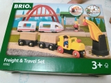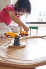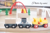 クレーンや貨物列車、トラベルトレインがセットになった限定レールセット。荷物はマグネット付きでクレーンで上げたり降ろしたり、ワゴンに載せて運ぶことができます。トラベルトレインには運転手、乗客を乗せることができます。レールは同じ規格ですので従来のセットと合わせて遊ぶことができます。