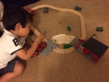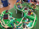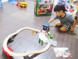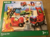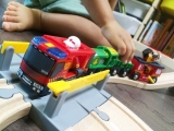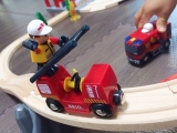 新シリーズレスキューシリーズの基本セット。山で火事が発生しました。ガレージの扉を開けて火事の現場へ緊急出動しましょう。サイレンとライトを忘れずに。アシスタントの消防隊員たちもレスキュートレインで続きます。急いで!