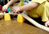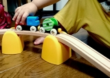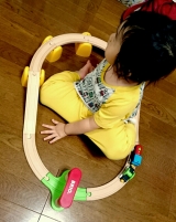 一歳半からのマイファーストレールシリーズに電池で動く車両がはいったセットが登場。ブロックトンネルや支柱もついて立体的に。くるくるまわるワゴン、マジックマグネットや傾斜レールは初めてのレール遊びを手助けします。