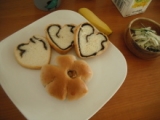 先日ママ友宅ランチをした時に、頂いて帰ってきたハート型のショコラ折り込みパン❤と差し入れ用に私が作ったクルミパンで朝食です(^^) ママ友が作ったハート型のショコラ折り込みパンとってもキュートで美味しいです(^^) 子供達も大喜び ショコラ折り込みパンはクックパットさんを参照して作ったとのこと… 2011/05/03
