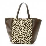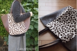 アニマル柄コンビシンプルトートバッグ | アニマル柄ファスナートートバッグ大 | ヒョウ柄フェイクファーリバーシブルトート |