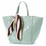 大人気のスカーフ付きトートにエナメル素材が登場 表地のエナメル合皮に裏地のヌバック調合皮を張り合わせて高級感をUPざっくり大ぶりで使い勝手◎オンでもオフでも大活躍!スカーフがポイント ★新作★カシュカシュcachecache(スカーフ付きエナ… 2012/06/11