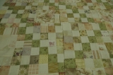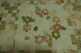 お花のリースのタペストリー35cmの正方形をつなぎました 同じ物を4枚作り このパターンは取り敢えず完成お花のアップリケのパターンが まだ1枚しかできていません後4枚作って 正方形のパターンとつないでボーダーを付ければトップは完成とは簡単に言うものの 暑くってサクサクとはかどりませんキルト綿をはさ… 2012/07/03