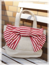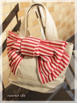 カシュカシュ カジュアルトート リボンカシュカシュ cachecache(ビックリボンラメ麻トート小)