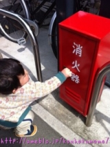 落ち葉を見つけては、消化器のボックスの穴に入れたり。。。