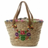 大きめざっくりカゴ。レジャーにもタウンでも大活躍。ハンドルの長さも肩にかけれて便利。ハンドクラフトなメキシコ風刺繍がポイント。