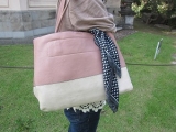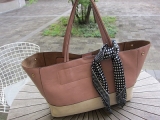 人気トートの横長タイプ登場。表地の合皮に裏地のヌバック調合皮を張り合わせて高級感をUP。ざっくり大ぶりで使い勝手◎オンでもオフでも大活躍!スカーフがポイント。