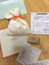 タイハーブを贅沢に使ったスキンケア商品ーcadeauーをお試しさせて頂きましたた 何とも可愛らしい手作り感のある袋に入っていました こちらは黒石けん 2014/07/17