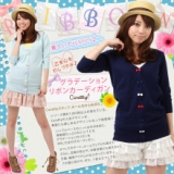 プチプラでスィート&ヘビロテな女の子ファッションのお店【Candlly】(キャンドリー)さんの 「シリーズ累計7,000着突破!グラデーション プチリボン付き Vネック ロング」がすごく可愛いです♪♪ シンプルなロングカーディガンだけど、ボタンがリボン型で、 グラデーションになっているんです… 2010/06/14