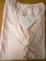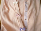 Candllyさんから可愛いカーディガンが届きました プチリボンVネックロングカーディガンのピンク色 制服の学生さんが着てそうなVネックになってます シリーズ累計7000着も売れているんだとか!! パステルピンク、イエロー、パープルのリボンが可愛い ボタン部分がプチプチになっているので 前を開けて… 2010/07/09