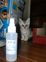 本当は愛犬ドンさんとAP水と一緒に写す予定でしたが 今回は特別ゲスト!子猫のシャーちゃん(♀)(仮)もAP水と一緒に撮影しました! 里親に出すために保護した野良猫ですが目ヤニがひどかったのでAP水をさっそく使わせていただきました^^ 綺麗に取れたので驚きです!これからも続けたいと思います ドン… 2013/05/31