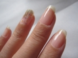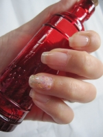 | プッシャーで甘皮を処理し、スポンジファイルで爪の表面を軽く削ります。 その後、エタノールなどで汚れやほこりを綺麗に取り除きます。 ※エタノールは別売りです。 | ベースクリアジェル、をネイルブラシで、甘皮に付かない様に塗ります。 | 15~20秒程度を目安にLEDライトを照射します ベースクリアが硬化したら、同じ要領でトップクリアを爪にのせ再度、硬化させます。 | 最後に爪の表面に残っている、未硬化状態のジェルをエタノールなどで拭き取ります。 未硬化状態のジェルの残してしまうと、ネイルが曇ってしまう可能性があります。 ※エタノールは別売りです。 ※クリアのジェルのみが入っております。 |