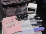 | ジェルネイルを硬化させるライトです。 USB電源と単三電池(3本)の2WAY電源。 同時照射は指3本まで可能です。 | このジェルネイルキットのアイテム達がしっかり入って、持ち運びも便利な収納ポーチ。 |