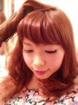 前髪を取り、根元を立ち上げ半円を描くようにスタイリングするとふんわりした前髪になります。