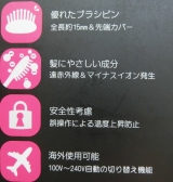 ピン外回りのブラシピンと、安全な先端カバーにより髪をアレンジするときに手を添える事が可能です。